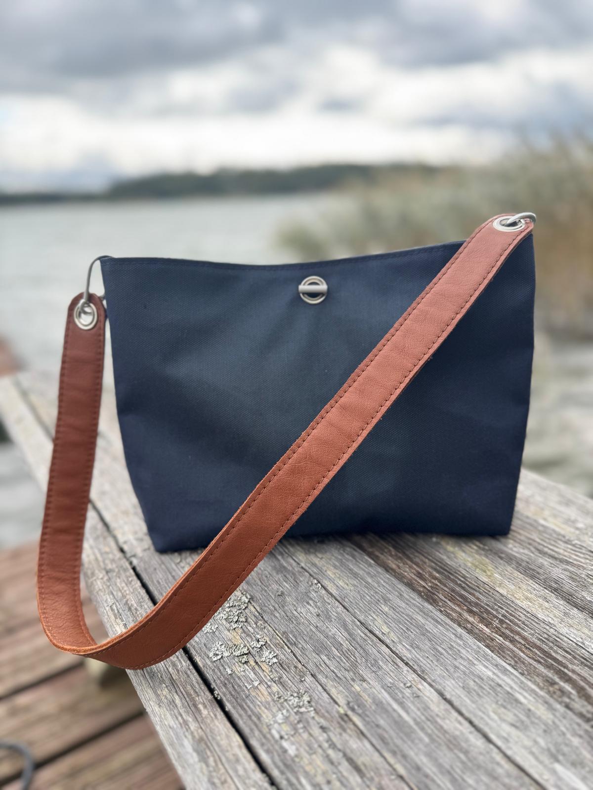 Dorrito laukun ulkokangas on vedenpitävää ja kestävää venekuomukangasta. vuori kestävää huonekalukangasts. Keskilokeron toinen sivu tehty venekuomuikkunamateriaalista joten vilkaisemalla laukkuun näkee mitä taskussa on. Laukun toinen pienempi sisätasku myös lapinäkyvä. Laukunhihna aitoa nahkaa. Laukun valmistuksessa hyödennetty verhoomon sivuvirtoja. ♻️